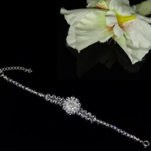 Bransoletka – szeroka na 3,4 cm, wykonana z kryształów Precioso oraz srebra rodowanego pr. 925. Doskonały dodatek ślubny i wieczorowy.