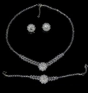 Komplet biżuterii ślubnej kolczyki, bransoletka i naszyjnik