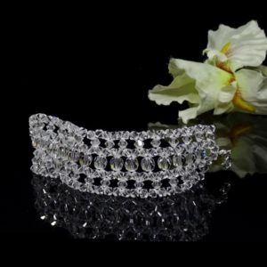 Bransoletka – szeroka na 3,4 cm, wykonana z kryształów Precioso oraz srebra rodowanego pr. 925. Doskonały dodatek ślubny i wieczorowy.