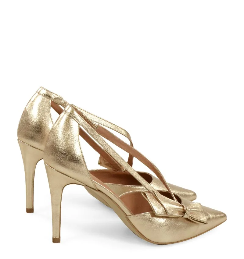 3 opinie dla IDA – Złote szpilki z paseczkami i kokardką