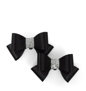 Przypinana podwójna kokarda w kolorze białym z srebrnym środkiem