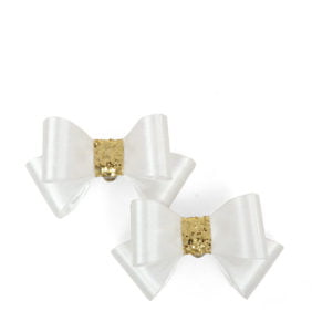 Przypinana podwójna kokarda w kolorze różowym z srebrnym środkiem