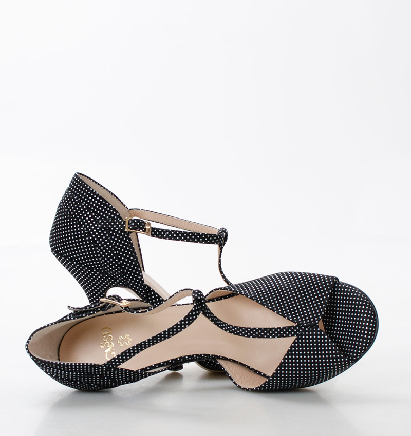 SOLEDAD- czarne sandałki w białe kropki do tańca