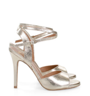 LOURDES – Jasnobeżowe sandałki do tańca ze złotym paskiem